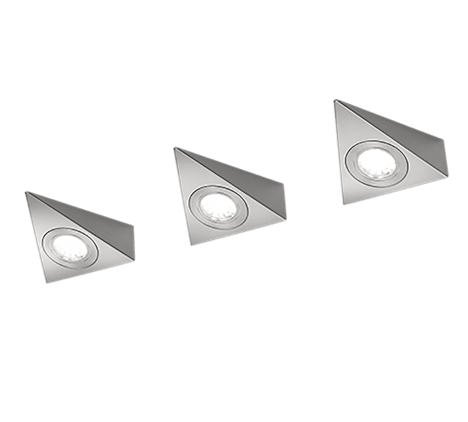 Las elegantes lámparas bajo armario ECCO se presentan en un juego de 3 unidades y sirven no sólo como iluminación funcional de la zona de trabajo, sino también como realce visual. Su diseño tridimensional les confiere un aspecto moderno. Pueden encenderse y apagarse fácilmente con el interruptor de la carcasa. Las luces bajo armario armonizan en un elegante níquel mate atemporal y pueden integrarse en cualquier estilo de decoración. Las luminarias también incorporan la moderna tecnología LED, que se caracteriza por su alta calidad lumínica y su eficiencia energética. En comparación con las fuentes de luz halógenas convencionales, se puede ahorrar hasta un 80% de los costes energéticos. Las fuentes de luz LED también tienen una larga vida útil, producen menos calor y protegen el medio ambiente.