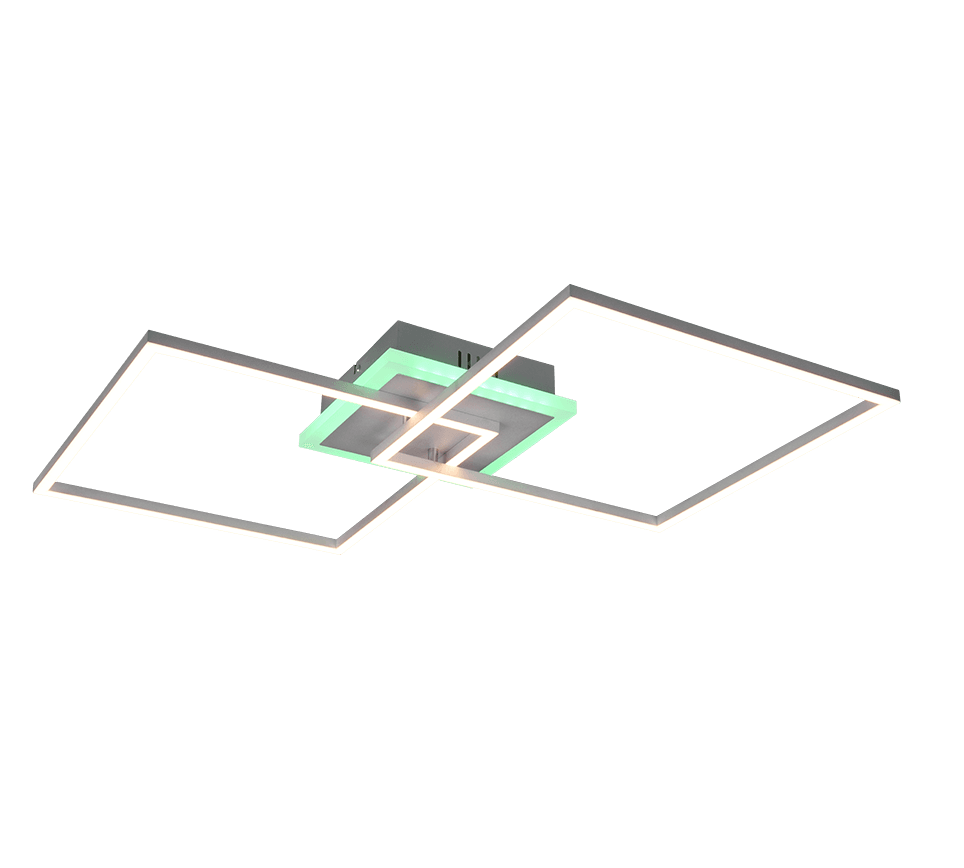 Las lámparas de techo con pequeños toques de luz hacen brillar las habitaciones. ARRIBO pone acentos de luz llamativos y convence con diversas funciones adicionales. Un cambiador de color RGBW integrado aporta variedad y la intensidad de la luz también puede ajustarse sin escalonamientos por control remoto. El aspecto geométrico en titanio es absolutamente moderno y elegante. Además, la luminaria incorpora la moderna tecnología LED, que se caracteriza por una gran calidad de luz y eficiencia energética. En comparación con las lámparas halógenas convencionales, se puede ahorrar hasta un 80% de los costes energéticos. Además, las fuentes de luz LED tienen una larga vida útil, producen menos calor y protegen el medio ambiente.