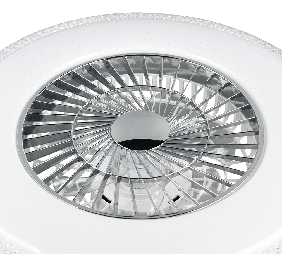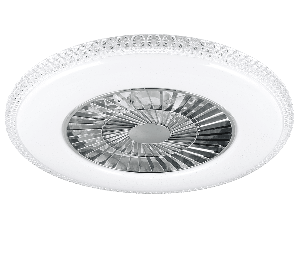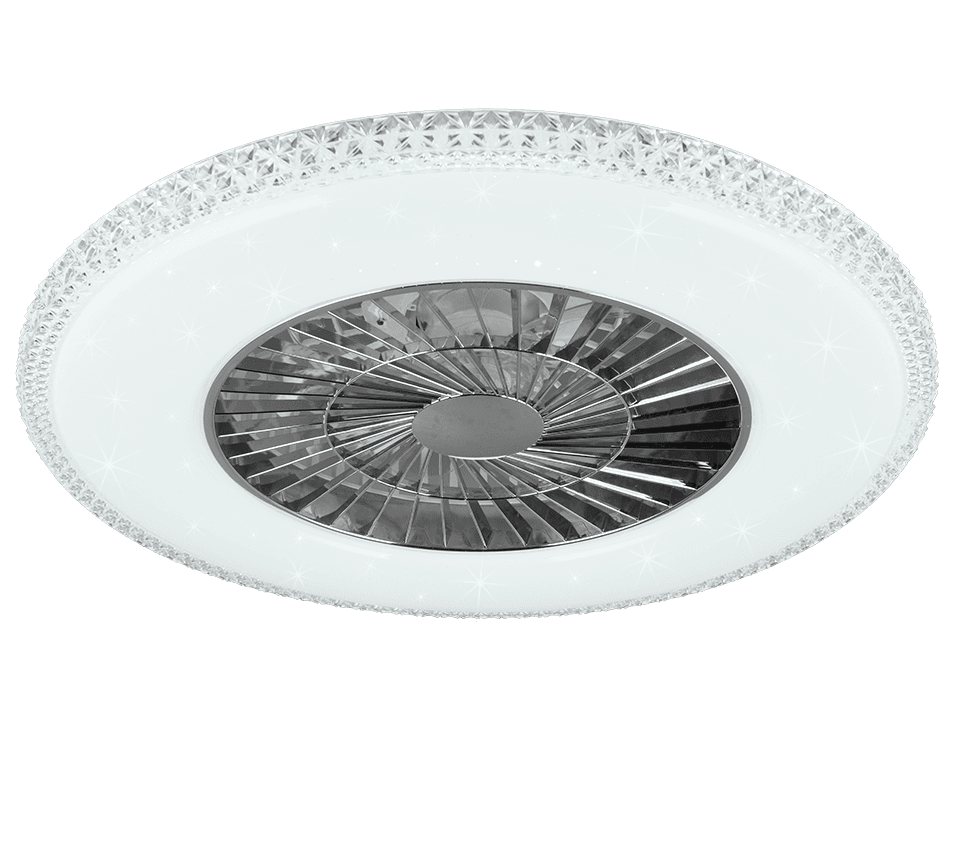 Lámpara de Techo HARSTAD 2 en 1 con Ventilador, Mando a Distancia y Luz LED Ajustable – Color: Cromo – Material: Plástico – Tipo de Luz: LED – Lúmenes: 3900 – Temperatura: 3000 – 6500K