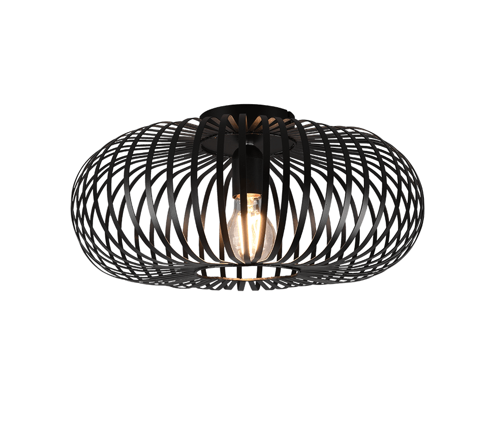 Los arcos metálicos de filigrana de la lámpara de techo JOHANN se unen a una elegante pantalla, que proporciona un resultado luminoso único. Colocada en el salón, la lámpara proyecta un gran patrón de luces y sombras en el techo, creando un ambiente acogedor. El diseño en negro mate crea un contraste de color para interiores modernos. Para una iluminación que ahorre energía, se recomienda utilizar un iluminante LED. Son una alternativa óptima a las lámparas halógenas convencionales y ofrecen una gran calidad de luz y un ahorro energético de hasta el 80%. Además, las lámparas LED le ayudan a beneficiarse de una larga vida útil, una baja generación de calor y, al mismo tiempo, protegen el medio ambiente.